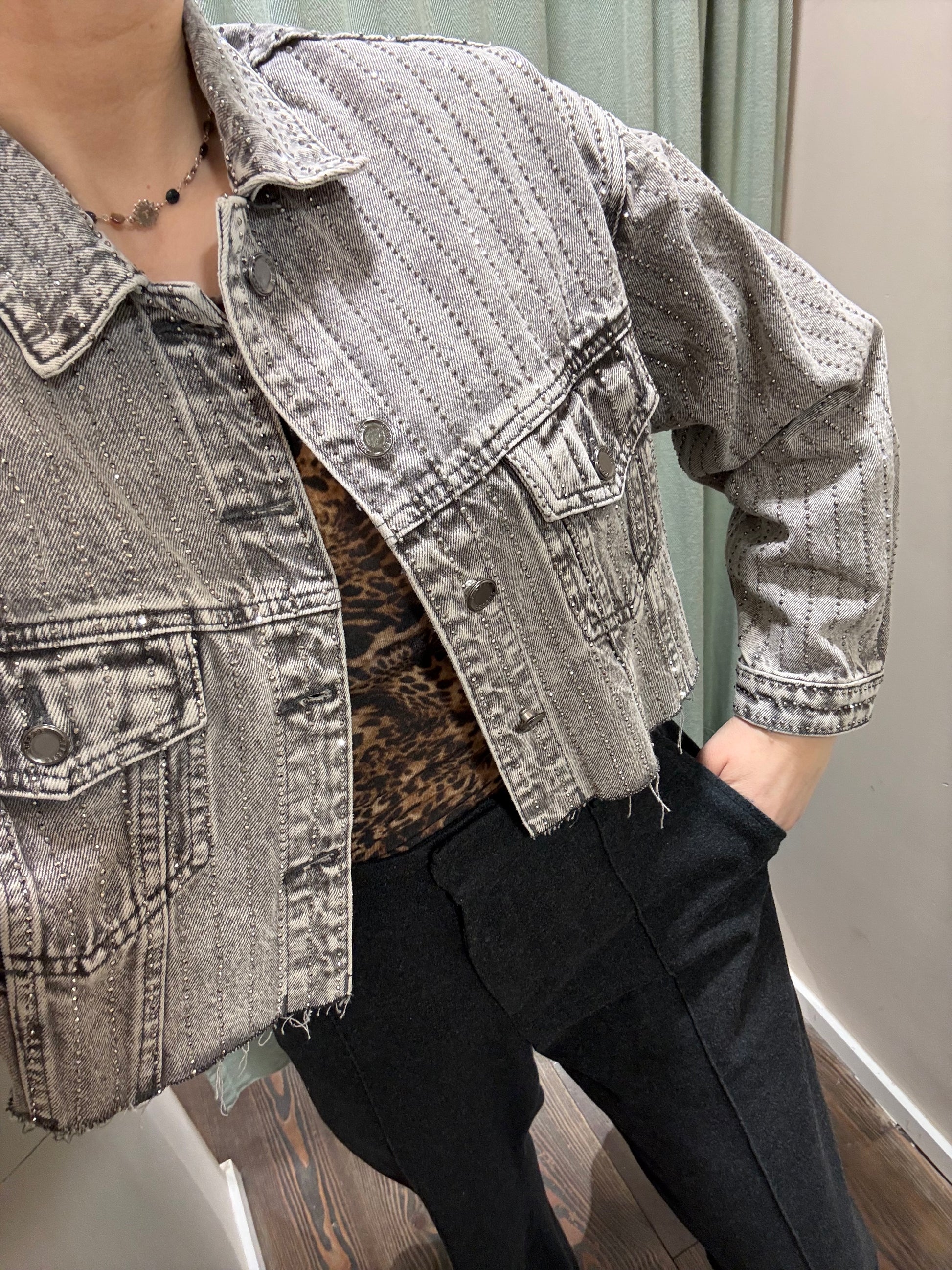 denim nero lavato con strass