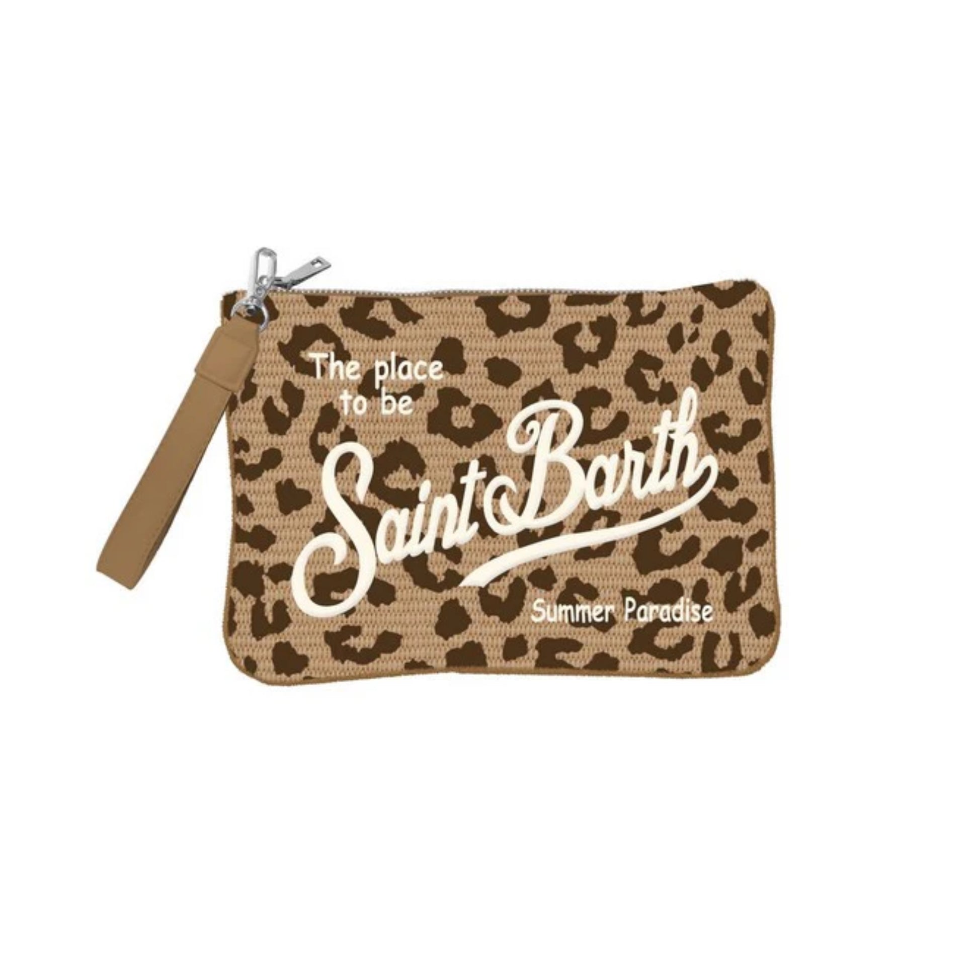Scopri la Parisienne Mini Pouch, un’elegante borsa in paglia sintetica beige dal design compatto e strutturato. Rifinita con dettagli maculati e foderata internamente, è ideale per portare l’essenziale con stile. Impreziosita dal logo Saint Barth ricamato, presenta una pratica chiusura a zip e una tasca interna. Disponibile in diverse fantasie.